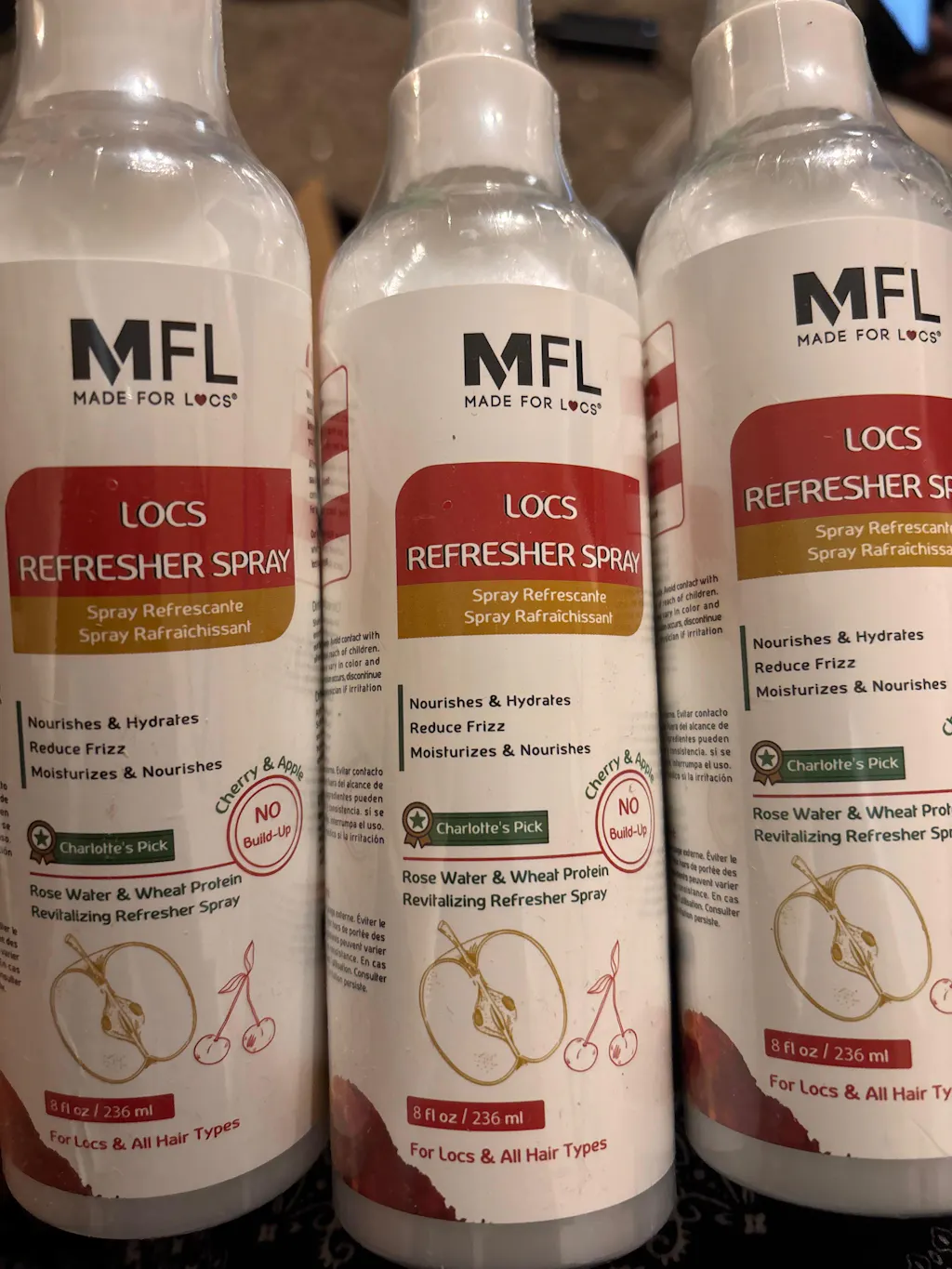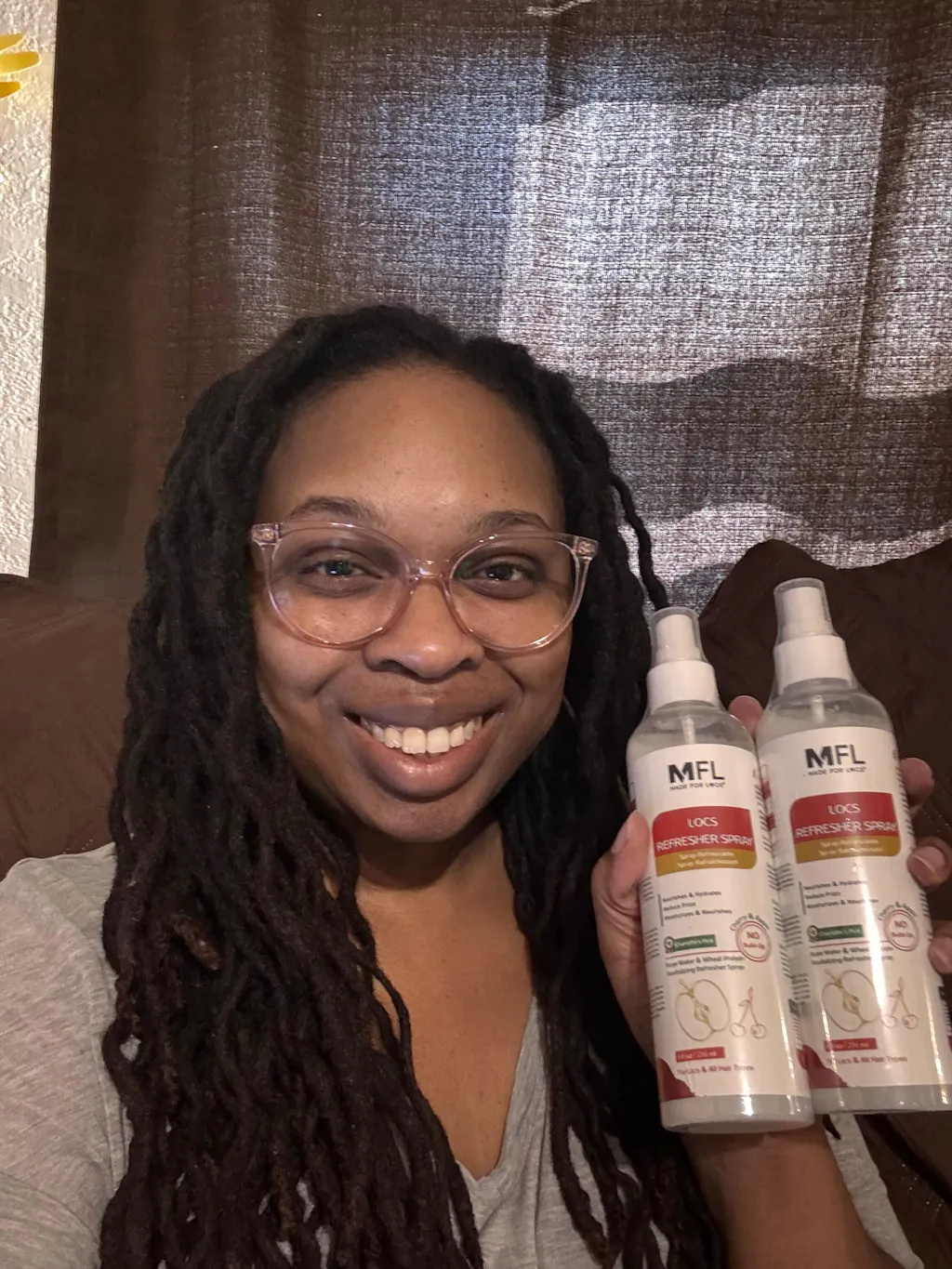 One of our best-sellers is our daily refresher spray for your locs and hair that will keep it hydrated and smelling amazing throughout your day.