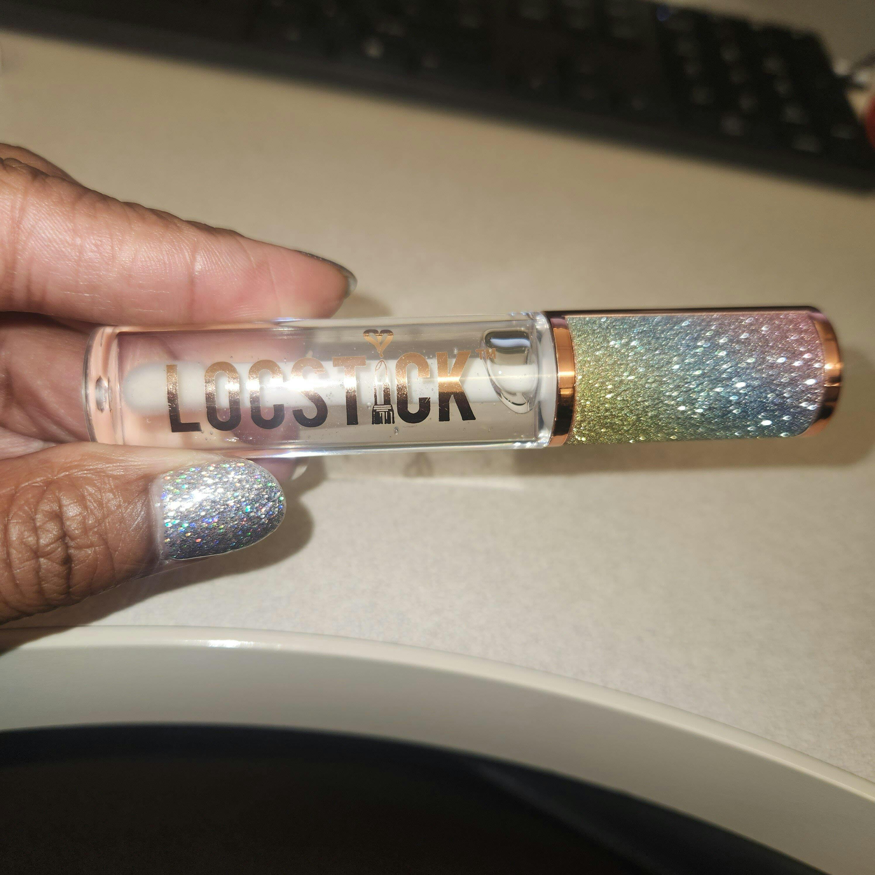 I received Crystal Clear LocStick as a gift with my order and I LOVE it!! Not sticky. Perfect thickness. Great shine. Glides on beautifully and lasts a long time between applications. I will be buying other colors. Thank you, MFL!